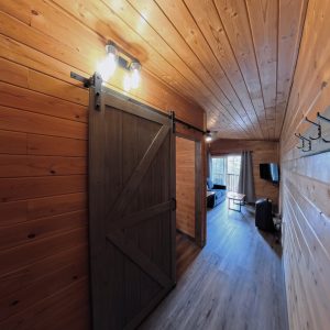 The Studio Suites are the lower level, walk-out units, located below our Village Chalet accommodations. If you need to accommodate a large group or family, these suites can be booked together with the upper level Loft or King Chalet. Connecting doors to stairs to the upper level Chalet can be opened up to connect both units.
